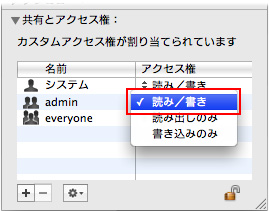 リストに表示されている以下のユーザおよびグループのアクセス権を [読み/書き] に変更します。